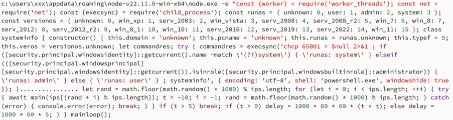 node.exeexecuting with encoded command-line arguments containingsysteminfoand reconnaissance scripts,php.exeinAppData\Local\Tempdirectories,rundll32.exeloading suspicious DLLs with “start” parameter from C:\ or temporary locations, and potential abuse of legitimate environments where Node.js, PHP, and Java executions are common. Hunt for these in: process creation with full command lines, file creation events inTemp/AppDatadirectories, and user context analysis (developer vs. non-developer systems). - PowerShell reconnaissance and ADSI enumeration. We anticipate seeing PowerShell logs containing reconnaissance commands: