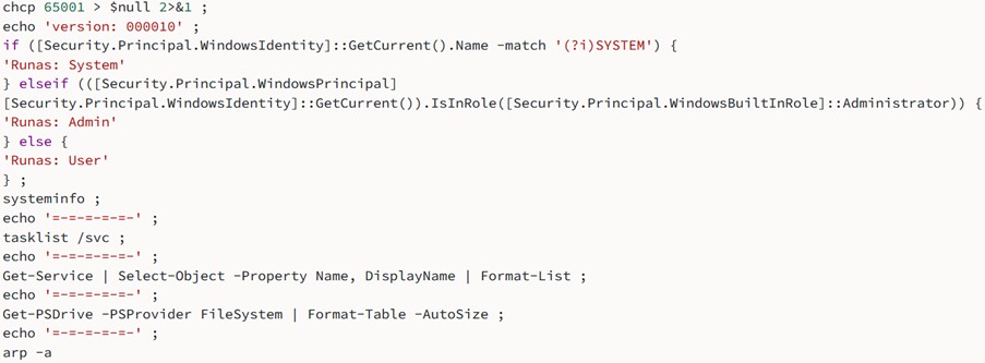 The script excerpts below are taken from intrusions we analyzed and can help to detect or hunt for Interlock activities.