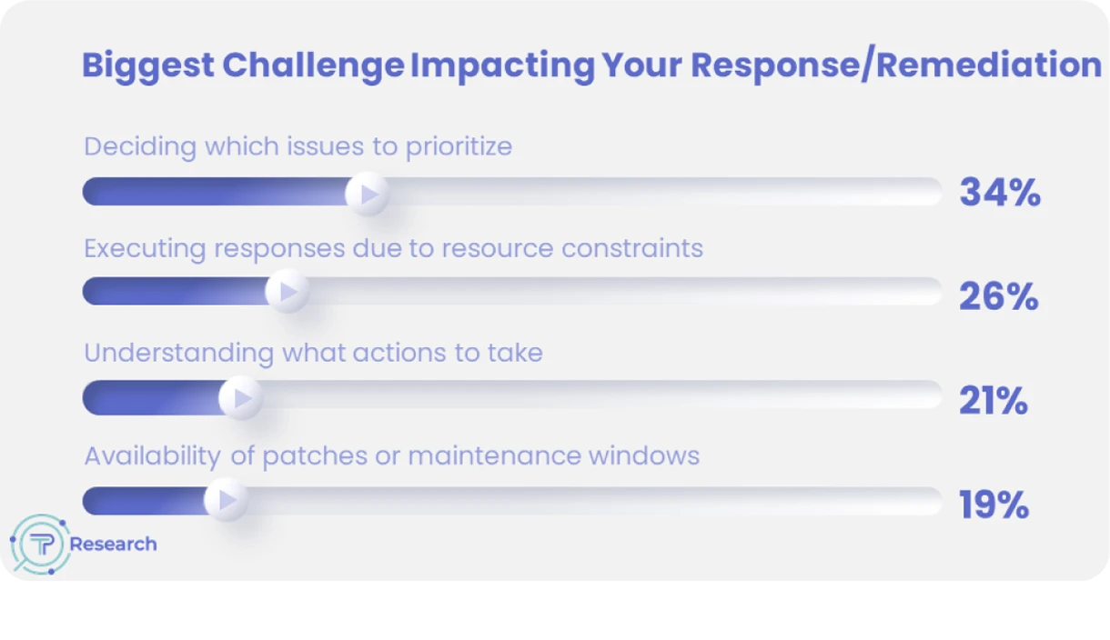 Even when teams manage to keep pace, they often waste precious hours chasing the wrong things. Without contextual risk scoring or clear workflows, low-impact issues consume time while critical threats remain unresolved. According to the same research, this lack of focus is one of the biggest obstacles to timely response and effective remediation.
