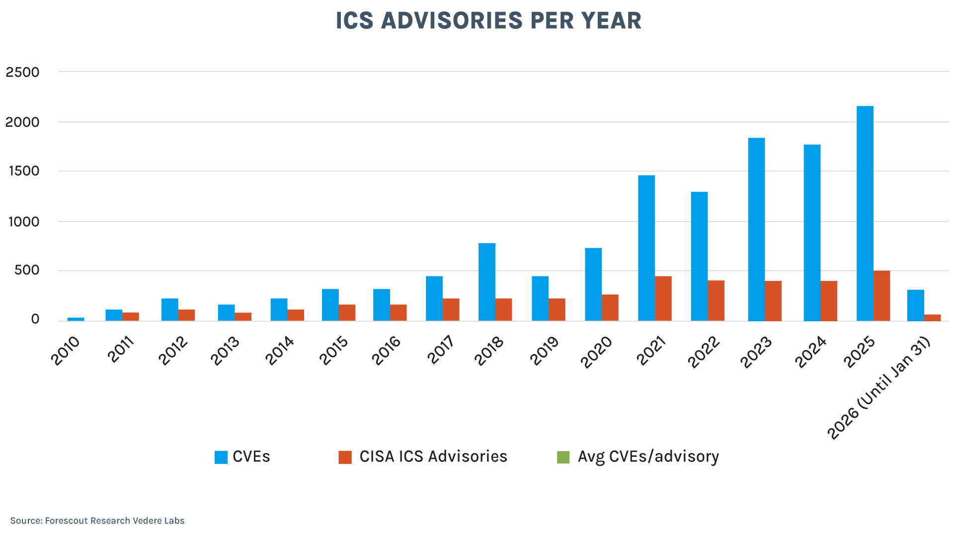 • 2025 set a record: 508 ICS Advisories covering 2,155 CVEs