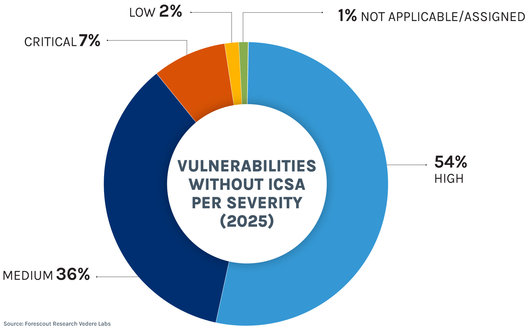 Vulnerabilities without an ICSA are no less important than those with a dedicated advisory from CISA. In fact, 61% of vulnerabilities in 2025 without an ICSA had a high or critical severity. And like those vulnerabilities tracked by CISA, these mostly affected the manufacturing and energy sectors.