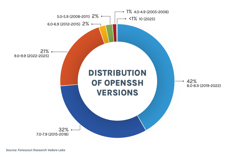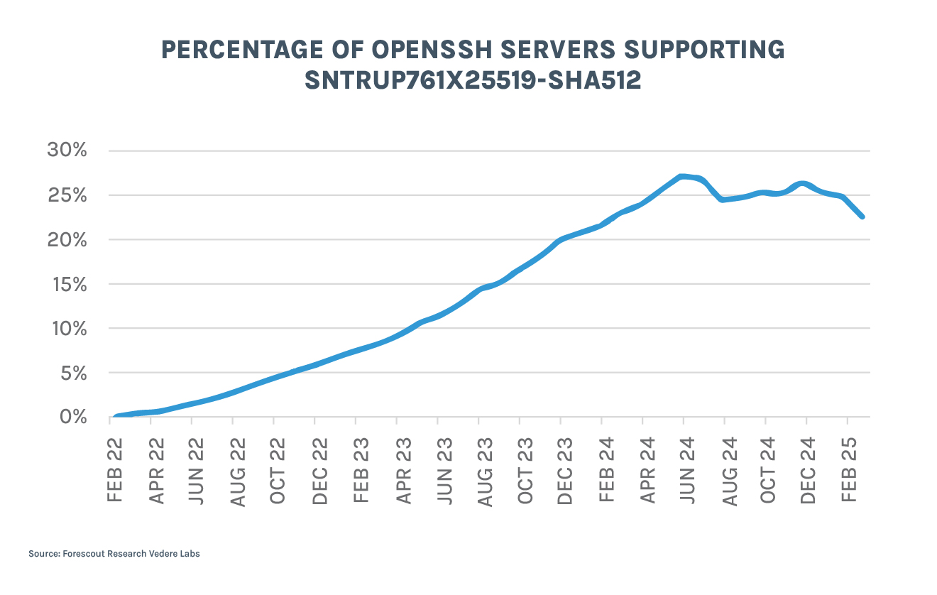 - Three quarters of OpenSSH versions on the internet still run versions released between 2015 and 2022 that do not support quantum-safe encryption.